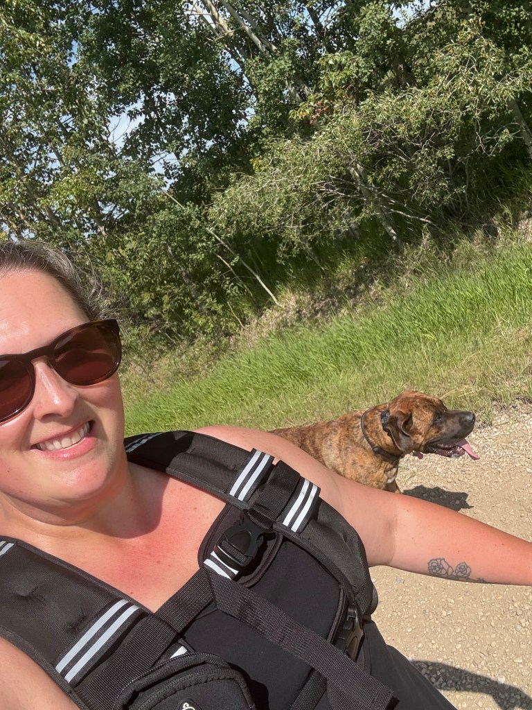 Have you ever tried a weighted vest? Or are you just here for the dog in the photo? Either way, drop a comment—I love hearing how other women are reclaiming their strength, one step at a time.